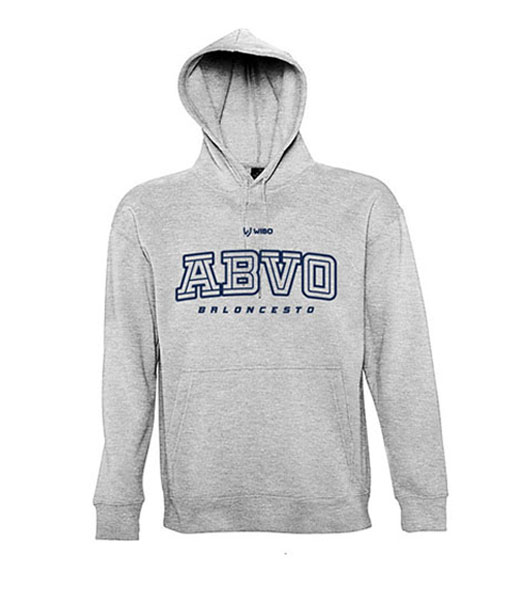 Sudadera de algodón con capucha y bolsillo tipo canguro, de alto gramaje y gran calidad, muy confortable; imprescindible para cuando bajan las temperaturas. Serigrafía «ABVO Baloncesto» en el pecho. Todas las tallas, disponible en varios colores.